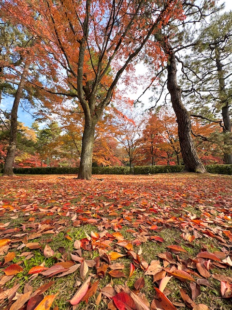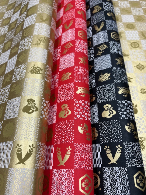 貼った原紙の上に型を置き、スケージ(大きなヘラ)で1色ずつ色を重ねます。