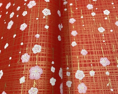 9494 縦梅赤地